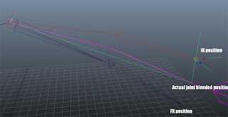 The three joint chain setup for limbs, the FK chain, the IK chain and the chain bound to the mesh. This seems to be the standard setup for most of the rigs I have seen. This setup is the one I was taught in school. Being the one who always has to reinvent things I looked at what made this setup the standard. I will start with the obvious stuff.